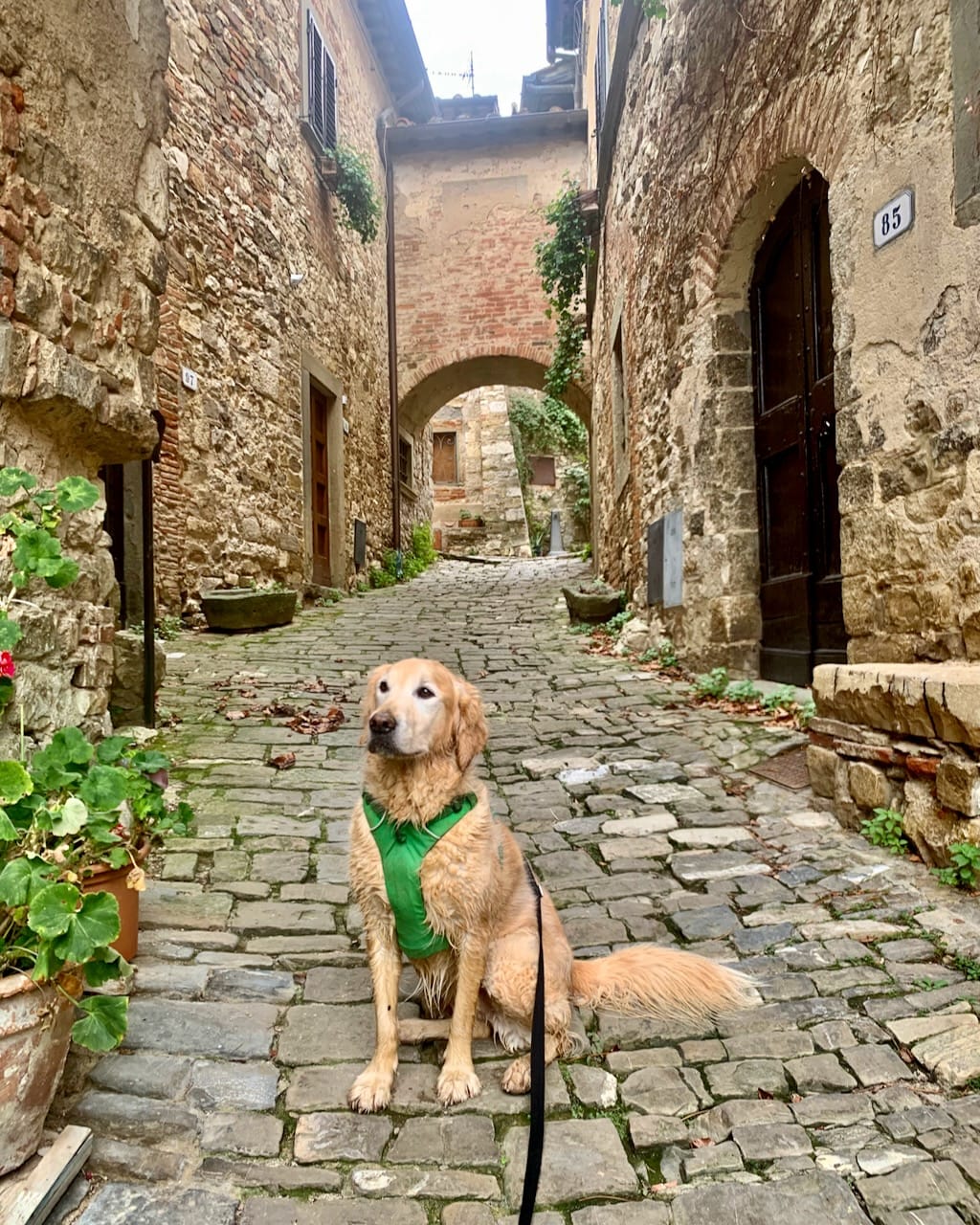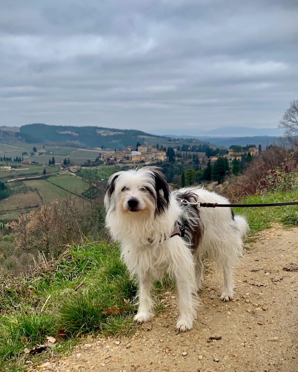 Pernottando a Greve in Chianti per un weekend, Maebh ed io ci godemmo due meravigliose e non impegnative camminate mattutine assieme alle nostre due guide esperte, facendo soltanto un po’ di attenzione alla situazione venatoria, perché era l’ultimo weekend in cui la caccia era ancora consentita. Maebh non ha paura degli spari, e si tiene sempre vicina a me, rispettando la selvaggina. La piccola Maia ogni tanto manifestava un po’ di apprensione. La presenza di Maebh la aiutava a rilassarsi un poco: nelle passeggiate condivise è sempre importante la co-regolazione emotiva.